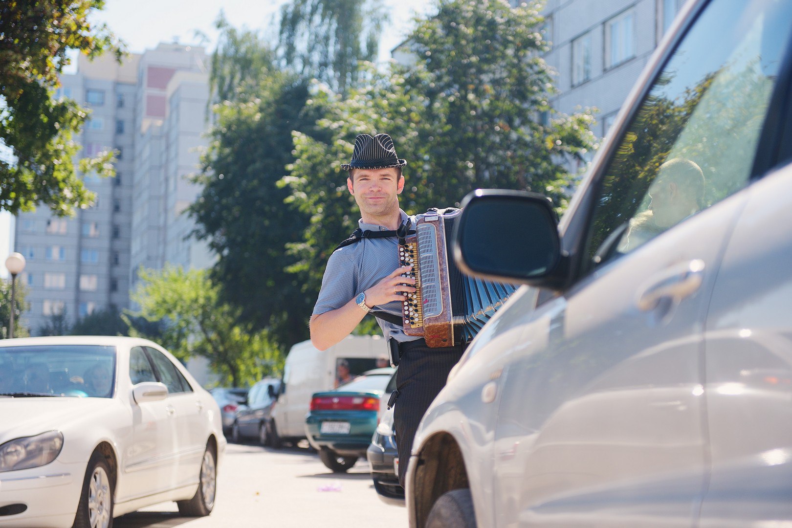 Баян на свадьбу - это круто! Друзья, теперь баян на свадьбе , например, во время выпроводки жениха и невесты, а также на других торжествах, звучит современно. У меня появилась возможность исполнять мелодии на баяне не только традиционным способом, но и с применением мобильного звукоусиливающего устройства с микрофоном, в том числе и под сопровождение формата "минус-1". Звучит очень круто, уже опробовано и одобрено клиентами!